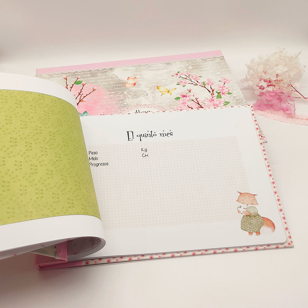 Una felicidad enorme inunda una casa con la llegada de un bebé y es que a lo largo de su primer año de vida, todos los días hay un pequeño progreso que nos gustaría poder retener en nuestra memoria y no olvidarlo nunca, la salida de su primer diente, la primera vez que probó la fruta, los bañitos de la tarde… Un libro de nacimiento es lo más adecuado para poder anotar todas esas pequeñas cosas junto a nuestras fotos más entrañables.