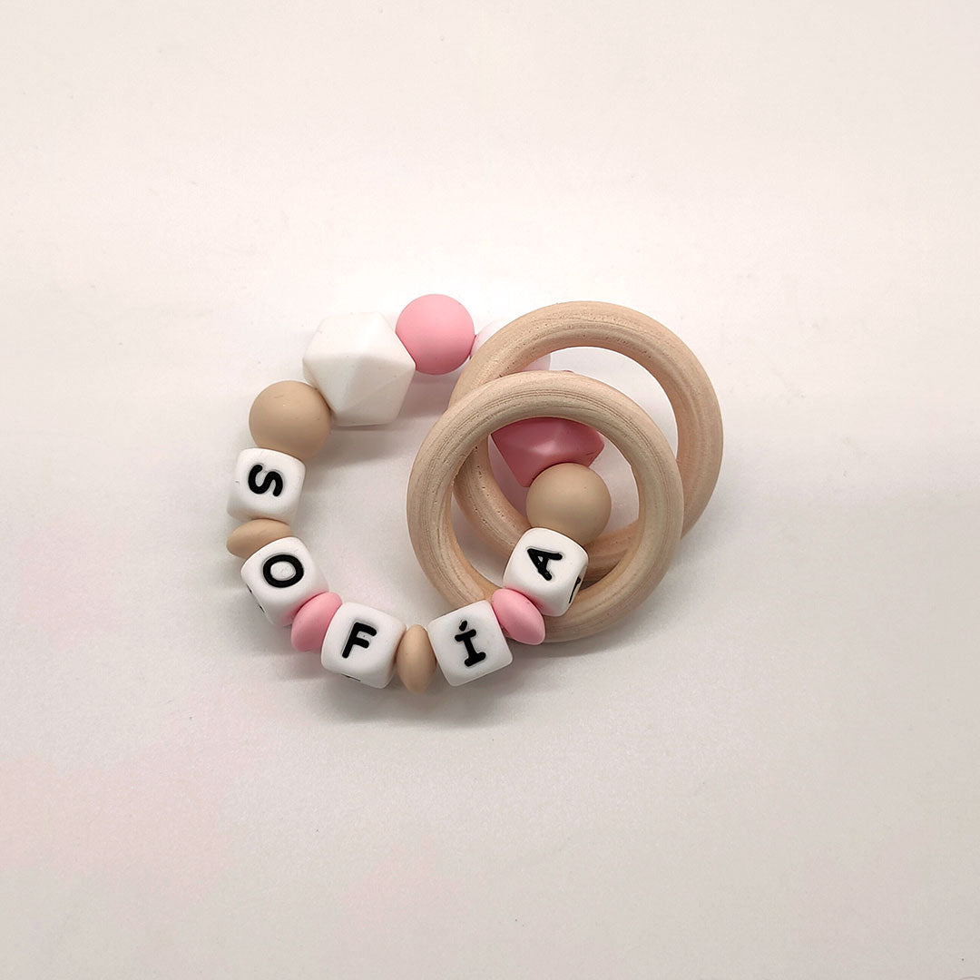 Mordedor hecho con piezas de silicona orgánica antibacteriana de grado alimenticio, completamente mordisqueable, suave para las encías y dientes en crecimiento ofreciendo alivio durante la dentición y apto para llevárselo a la boca y estar en contacto con la saliva. Por tanto libres de BPA, ftalatos, plomos y otras sustancias perjudiciales.