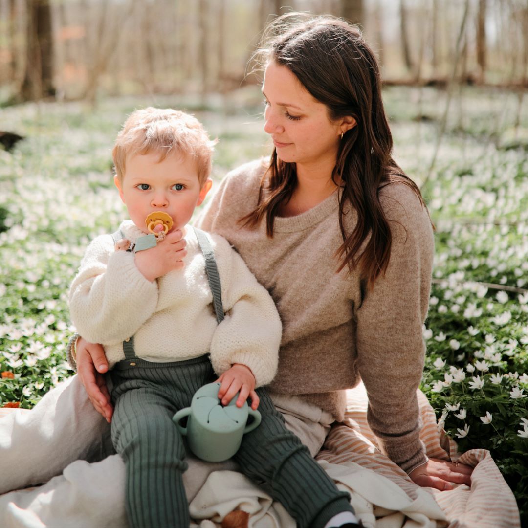 El chupete FRIGG Daisy con bordes adornados que imitan pétalos de flores son la esencia del diseño elegante. Los detalles floridos y modernos llaman la atención de todas las madres preocupadas por el estilo.
