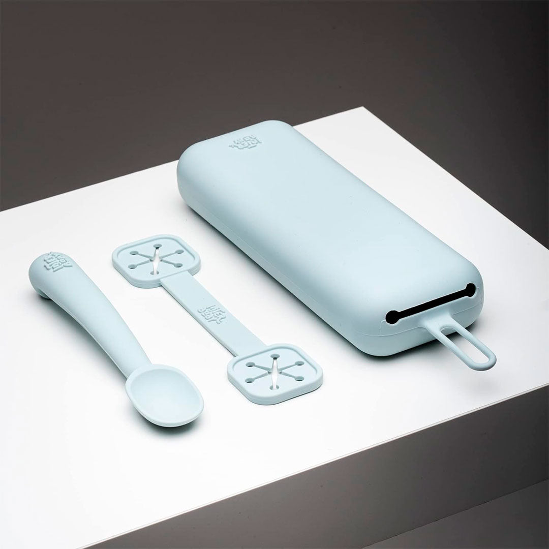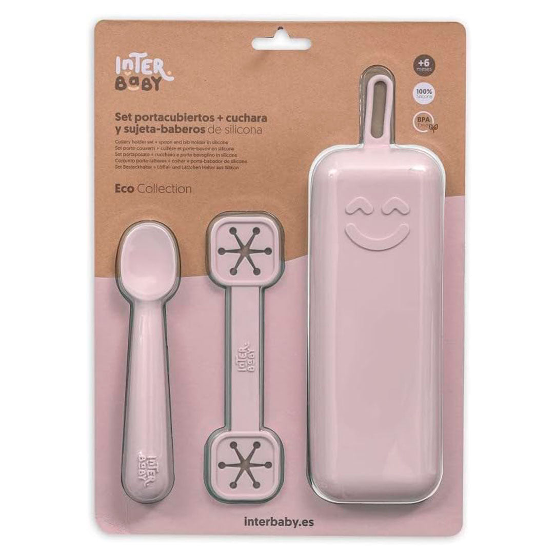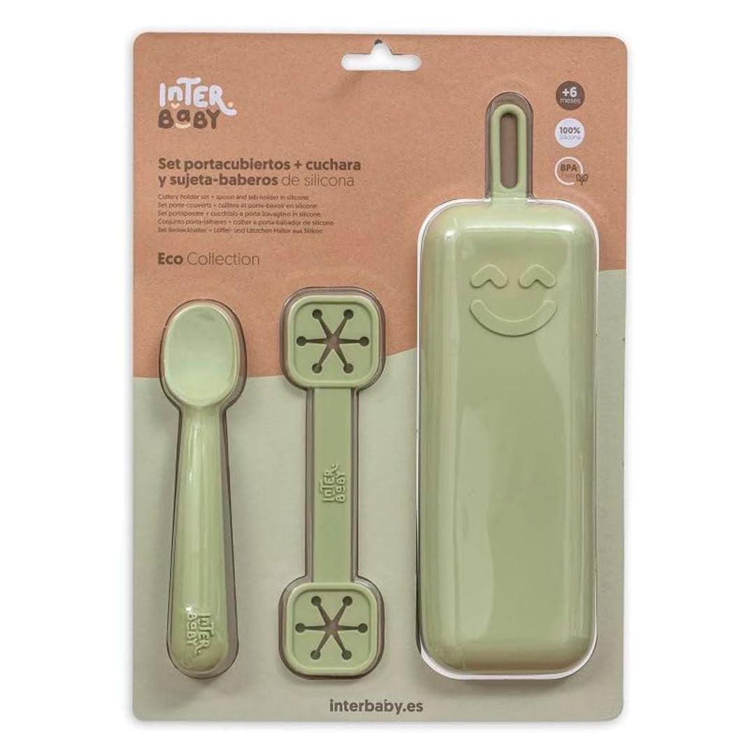 El set portacubiertos está formado por un estuche, una cuchara y un sujeta babero fabricados en silicona. Un set muy útil cuando estéis fuera de casa para llevar todo lo que necesitas para dar de comer al bebé estés donde estés.
