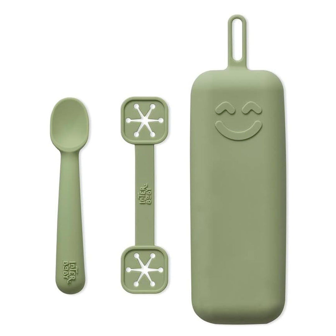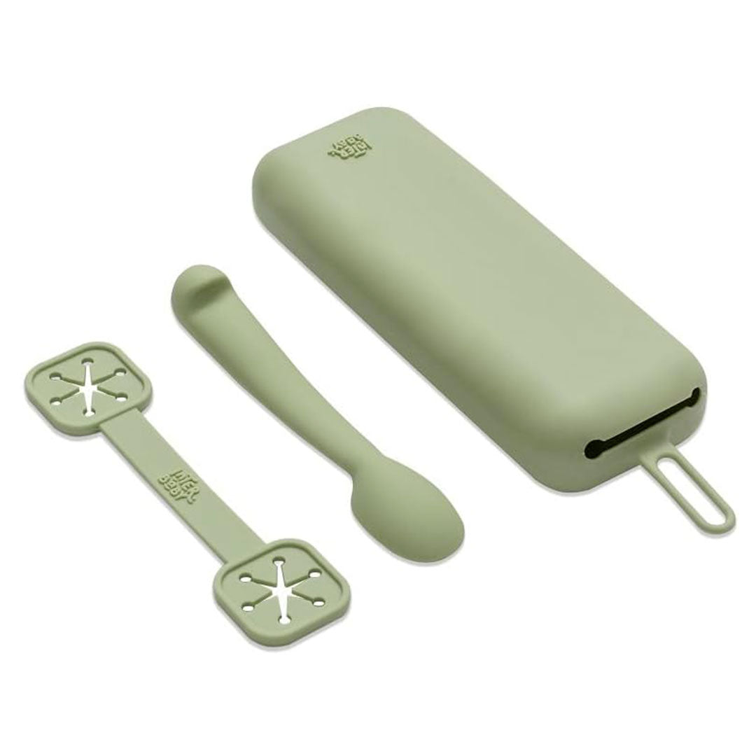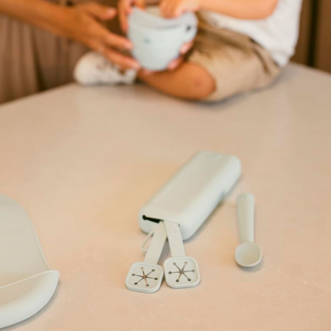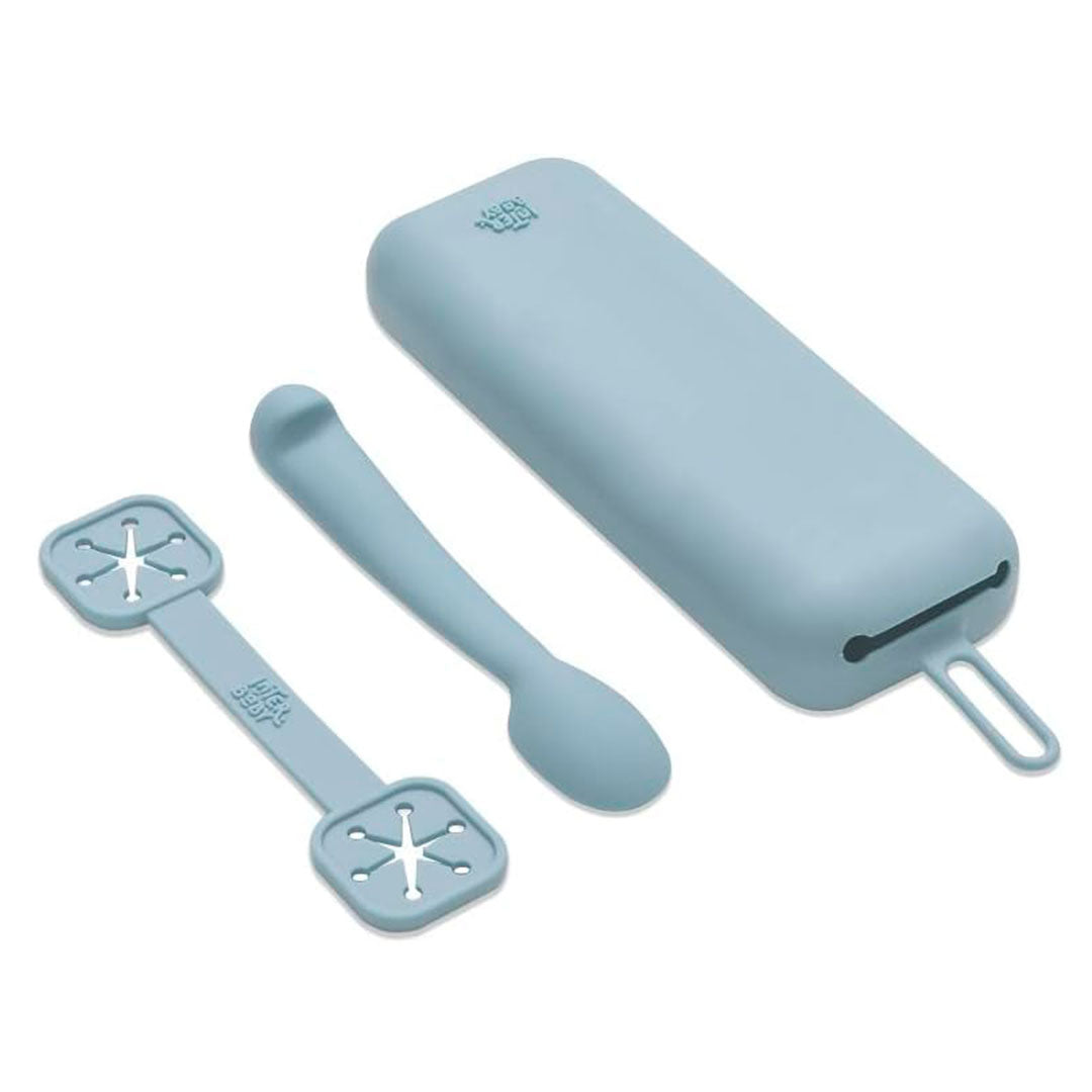 El set portacubiertos está formado por un estuche, una cuchara y un sujeta babero fabricados en silicona. Un set muy útil cuando estéis fuera de casa para llevar todo lo que necesitas para dar de comer al bebé estés donde estés.